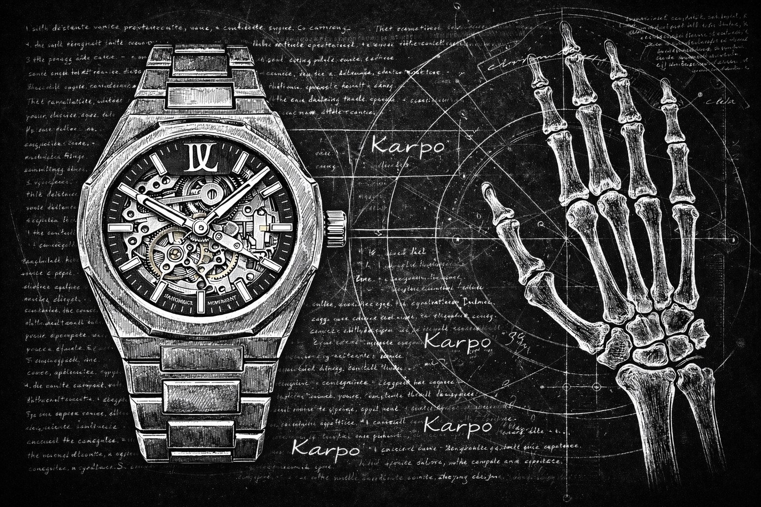 El nombre Karpo proviene del latín carpus, la palabra utilizada para describir la muñeca: el punto exacto donde el reloj vive y se mueve con el cuerpo.